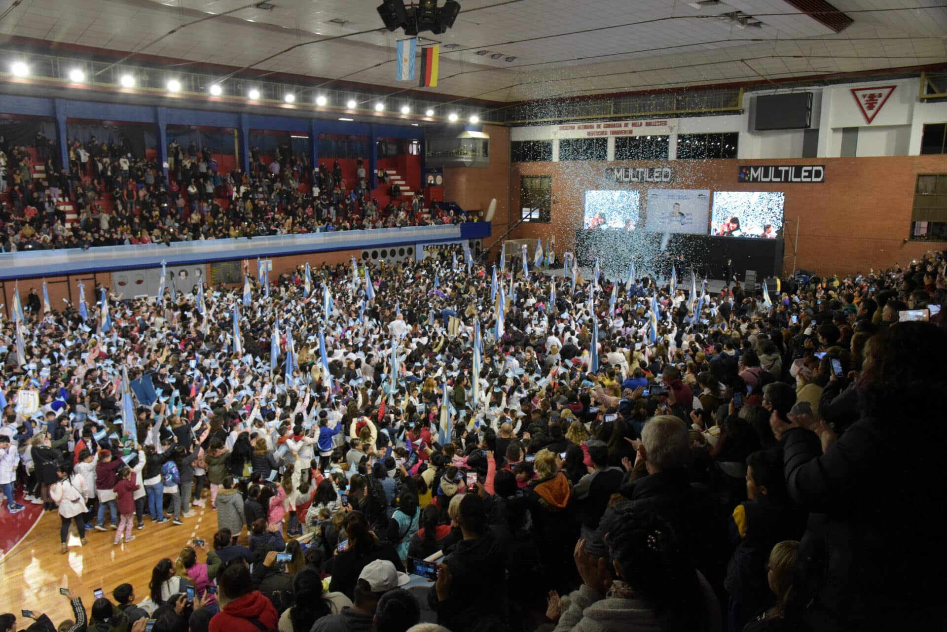 “Compartimos una verdadera fiesta con miles de chicas y chicos que vivieron un día muy importante, porque prometer a la bandera es prometer a la Patria, saber que somos ciudadanos de un país, que nos identificamos con los símbolos y los colores, pero también con un conjunto de valores y objetivos comunes”, destacó el Jefe Comunal tras la jura realizada en la Sociedad Alemana de Gimnasia de Villa Ballester.