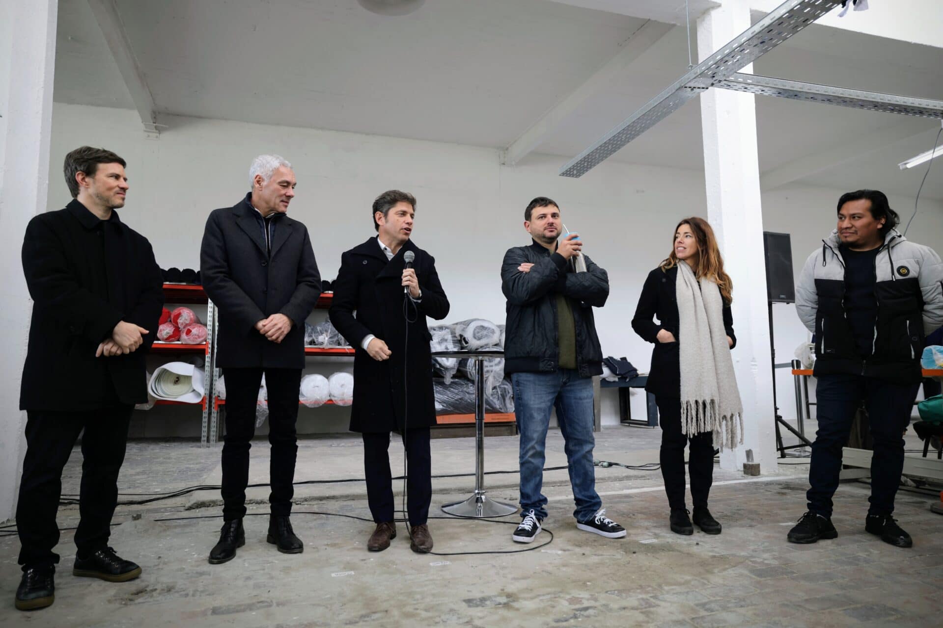 El gobernador de la provincia de Buenos Aires, Axel Kicillof, recorrió este jueves las nuevas instalaciones de la cooperativa “Argüello” del Polo Textil del Movimiento de Trabajadores Excluidos (MTE), ubicadas en el Polígono Industrial de Berisso, junto a los precandidatos a presidente, Juan Grabois, y a vicepresidenta, Paula Abal Medina; el ministro de Producción, Ciencia e Innovación Tecnológica, Augusto Costa; el intendente local, Fabián Cagliardi, y el referente de la Federación de Cooperativas de Costureros, Trabajadores de la Indumentaria y Sector Textil, Kevin Acebo.
