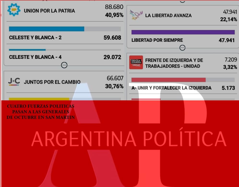 Elecciones 2023: En San Martín según el escrutinio provisorio pasan cuatro fuerzas a las generales.