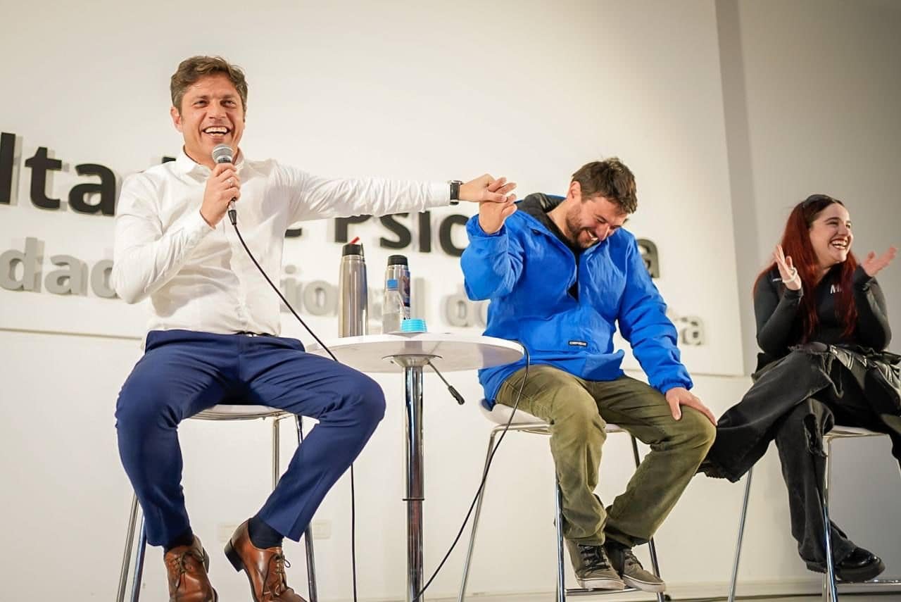 Ante más de mil personas, el gobernador de la provincia de Buenos Aires, Axel Kicillof, el ex candidato a presidente, Juan Grabois y la legisladora porteña Ofelia Fernández llevaron adelante un encuentro con juventudes en la Universidad Nacional de La Plata, en el marco de la campaña electoral. Participó también del evento el candidato a intendente de La Plata Julio Alak. La actividad superó la capacidad del auditorio y cientos de personas lo vieron afuera a través de una pantalla.