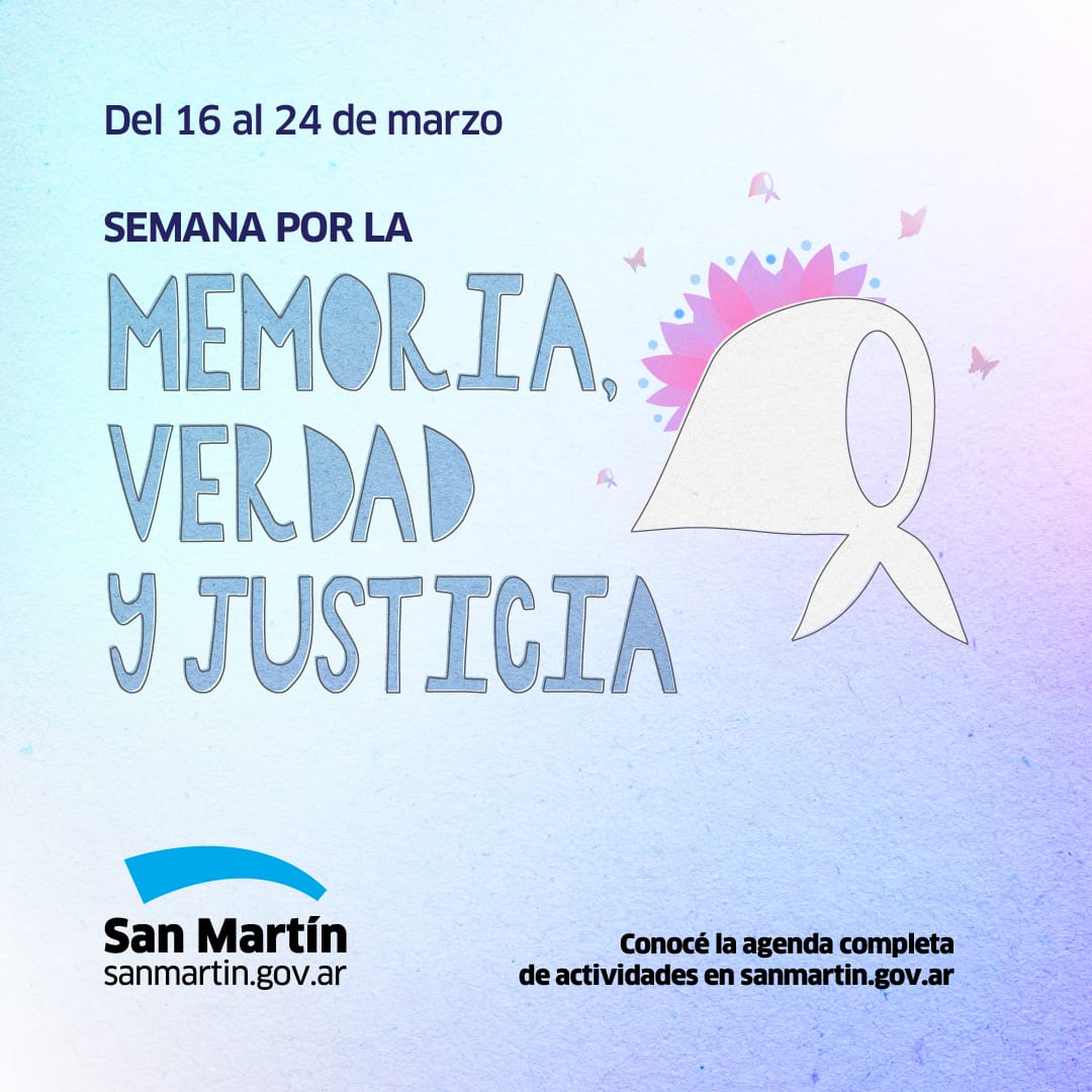Del 16 al 24 de marzo, el Municipio de San Martín conmemora la Semana por la Memoria, Verdad y Justicia con una amplia agenda de actividades para fomentar la reflexión sobre el golpe cívico-militar de 1976.