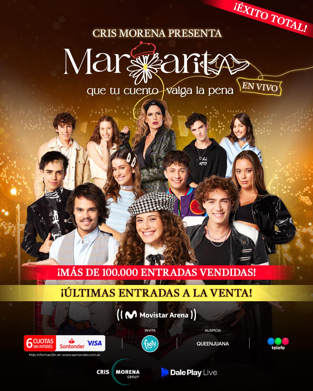 Margarita, la serie de la brillante Cris Morena ya es un éxito indiscutible. Luego de haber agotado 10 estadios en tiempo récord, anunció nuevas funciones en el Movistar Arena, llegando a un total de 14, superando las 100.000 entradas vendidas.