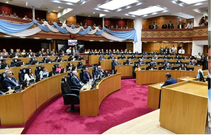 El gobernador Osvaldo Jaldo brindó, este sábado, una conferencia de prensa, al término del acto de Apertura de Sesiones Ordinarias de la Legislatura, donde destacó los avances institucionales que está atravesando la Provincia. Estuvo acompañado por el vicegobernador Miguel Acevedo y por el presidente subrogante de la Legislatura, Sergio Mansilla.