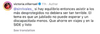 Villarruel argumentó que su rol como presidente del Senado la obliga a respetar las instituciones y actuar según la Constitución. Negó haber atentado contra el equilibrio fiscal y defendió las iniciativas votadas: “Si hay equilibrio, entonces asistir a los más desprotegidos no debiera ser tan terrible. El tema es que un jubilado no puede esperar y un discapacitado, menos”.