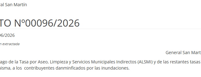 El Municipio de General San Martín prorrogó la eximición del 100% del pago de la Tasa por Aseo, Limpieza y Servicios...