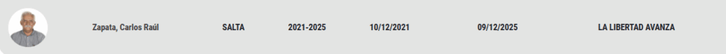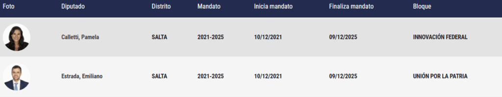 - Salta terminan su mandato 2019/2025 Juan Carlos Romero (Provincias Unidas), Sergio Leavy y Nora Giménez (Frente de Todos)